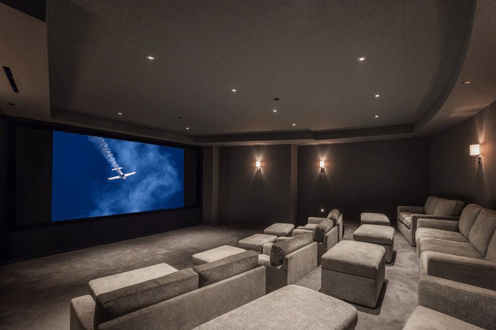 A sculptural staircase and elevator connect to the upper floor, where the primary suite delivers true retreat living with dual bathrooms, dual walk-in wardrobes and commanding panoramic vistas. Multiple guest suites and a suite of lifestyle spaces complete the home, including a glam room, art studio, massage room, full gym and an acoustically engineered Dolby Atmos cinema.