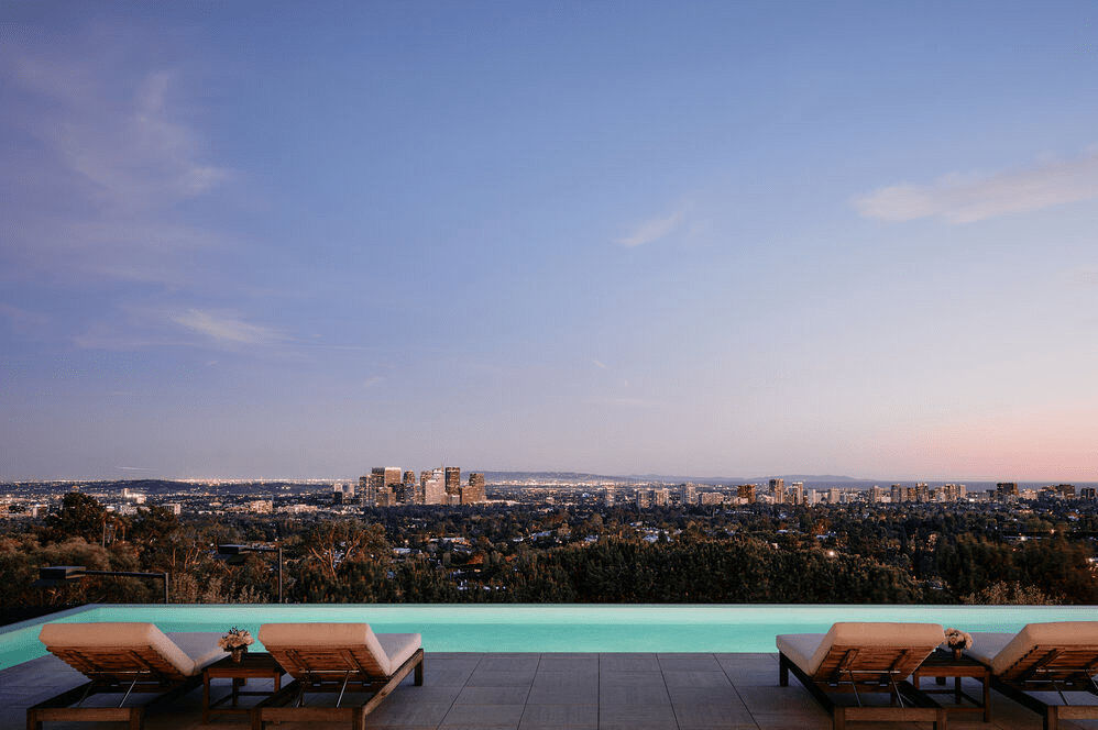 Set high in the hills above Los Angeles, this newly completed Beverly Hills estate is the result of six years of meticulous planning and expert craftsmanship. Sweeping 180-degree southern views stretch from the Pacific Ocean to the glittering city skyline.